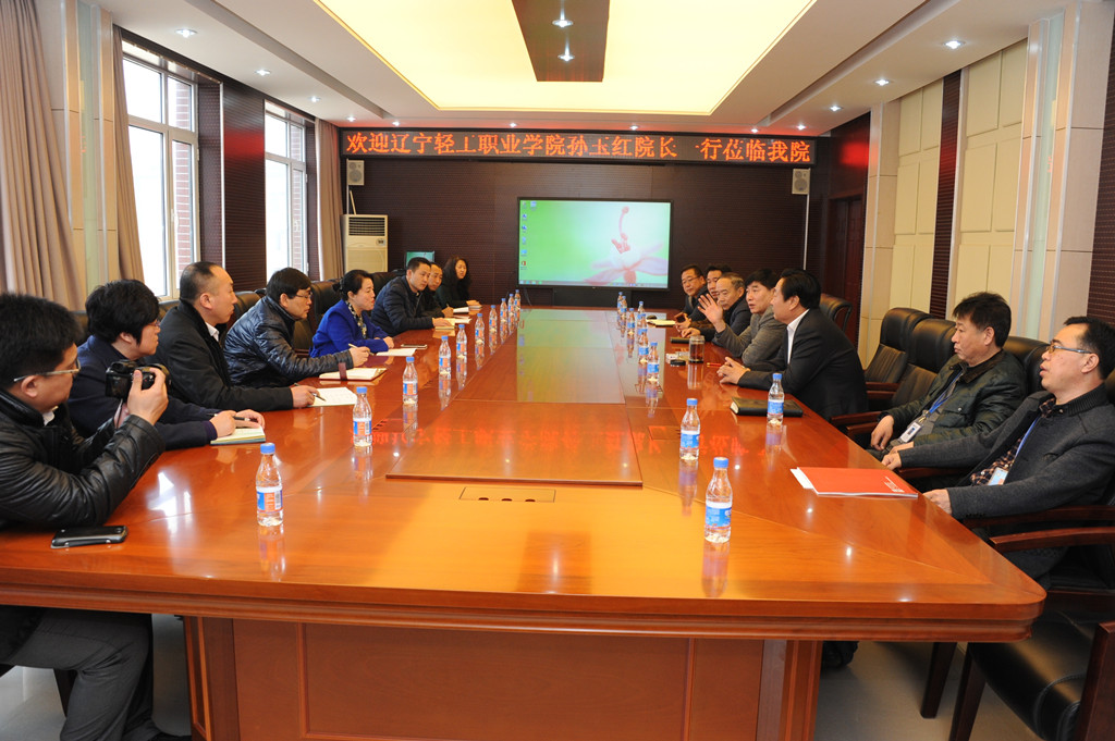 會上,王慶洲書記代表學(xué)院歡迎遼寧輕工職業(yè)學(xué)院各位領(lǐng)導(dǎo),希望兩校今后進(jìn)一步加強(qiáng)交流合作,共同發(fā)展。孫元政院長簡要介紹了我院基本情況。兩校就學(xué)院總體規(guī)劃、院內(nèi)實訓(xùn)基地的建設(shè)、后勤管理、教學(xué)管理及改革、專業(yè)建設(shè)等情況做了全面詳盡的交流。