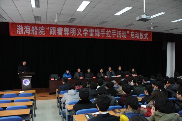 為深入貫徹落實遼寧省教育廳《關(guān)于開展遼寧萬名大學(xué)生跟著郭明義學(xué)雷鋒手拉手活動的通知》精神,學(xué)院于2012年12月27日下午在報告廳舉行了“跟著郭明義學(xué)雷鋒手拉手活動”啟動儀式。院黨委副書記費厚第、部門領(lǐng)導(dǎo)劉鵬翔、高云崇、張雷、王麗、方興、蒙曉影等出席了大會,學(xué)生處副處長秦春賀主持啟動儀式。