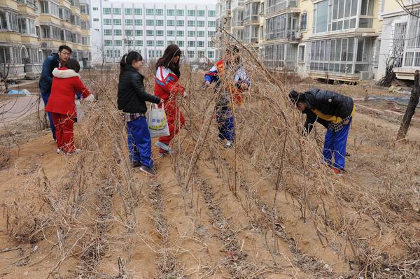 志愿者到廣電家園社區(qū)撿拾垃圾,清理環(huán)境