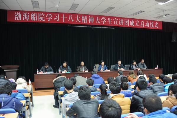 為了積極推動(dòng)廣大團(tuán)員青年認(rèn)真學(xué)習(xí)、深刻領(lǐng)會(huì)和堅(jiān)決貫徹黨的十八大精神, 12月12日下午,學(xué)院在綜合樓報(bào)告廳舉行了學(xué)習(xí)十八大精神大學(xué)生宣講團(tuán)成立成立儀式。學(xué)院黨委書(shū)記芮柏苓、副書(shū)記費(fèi)厚第、副院長(zhǎng)鄭海濤、組織部長(zhǎng)高俊東、宣傳部長(zhǎng)劉鵬翔、學(xué)生處長(zhǎng)高云崇、各分團(tuán)委書(shū)記以及223名學(xué)生宣講員出席了啟動(dòng)儀式。啟動(dòng)儀式由團(tuán)委書(shū)記張雷主持。