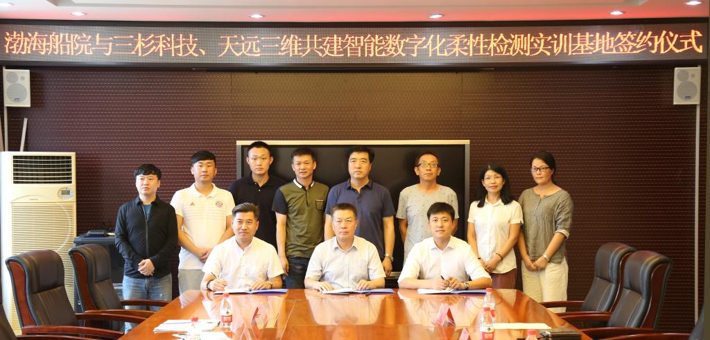 8月30日下午,我院與沈陽三杉科技有限公司、北京天遠(yuǎn)三維科技股份有限公司共建智能數(shù)字化柔性檢測(cè)實(shí)訓(xùn)基地戰(zhàn)略合作簽約儀式在四號(hào)樓大會(huì)議室舉行。沈陽三杉科技有限公司總裁王維、CEO劉偉、COO羅浩、CTO張楠,北京天遠(yuǎn)三維科技股份有限公司營銷總監(jiān)田海峰,我院院長(zhǎng)高文良,機(jī)電工程系主任張麗華出席簽約儀式。儀式由校企合作辦副主任王麗主持。