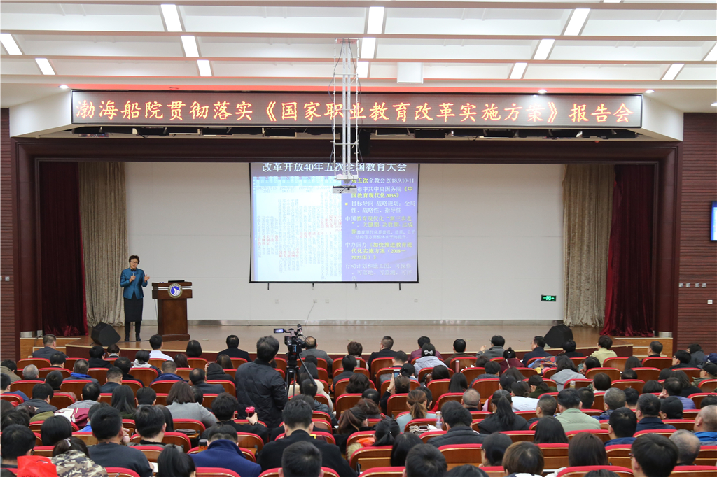 2月27日下午,我院在學(xué)術(shù)報(bào)告廳舉行渤海船院貫徹落實(shí)《國家職業(yè)教育改革實(shí)施方案》報(bào)告會,全院四百余名教職工參加報(bào)告會,報(bào)告會由院長高文良主持。會上,邢暉教授作題為《高等職業(yè)教育:新政策 新行動》的專題報(bào)告,報(bào)告回顧了改革開放40年以來國家教育改革發(fā)展、特別是職業(yè)教育改革發(fā)展,針對職教二十條中職業(yè)教育的3個(gè)轉(zhuǎn)變、6大方面的支招、6大方面的重點(diǎn)內(nèi)容及相關(guān)新名詞進(jìn)行了詳細(xì)解讀,并結(jié)合2019年教育部系統(tǒng)教育工作會議中提出的34項(xiàng)內(nèi)容,為學(xué)院貫徹落實(shí)《國家職業(yè)教育改革實(shí)施方案》、利用職教二十條發(fā)展學(xué)校提出了奮斗目標(biāo)。