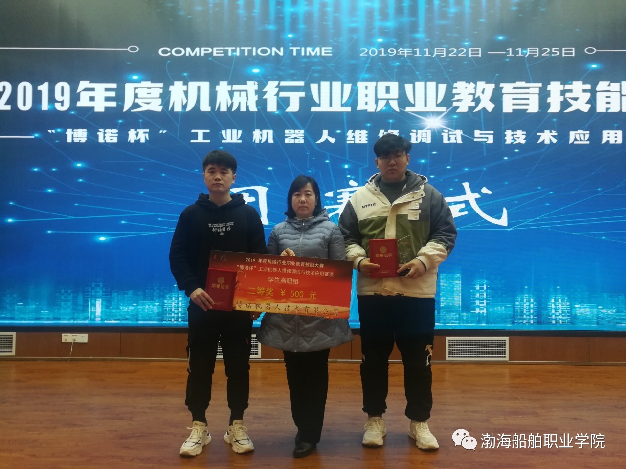 11月23—24日,2019年度機械行業(yè)職業(yè)教育技能大賽“工業(yè)機器人維修調(diào)試與技術(shù)應用”賽項在重慶工程職業(yè)技術(shù)學院舉行,我院李琦老師為指導教師,機電工程系工業(yè)機器人技術(shù)專業(yè)17G481班王詠鐸、王久華同學參加比賽,經(jīng)過激烈角逐,以大賽第八名的成績榮獲全國二等獎!