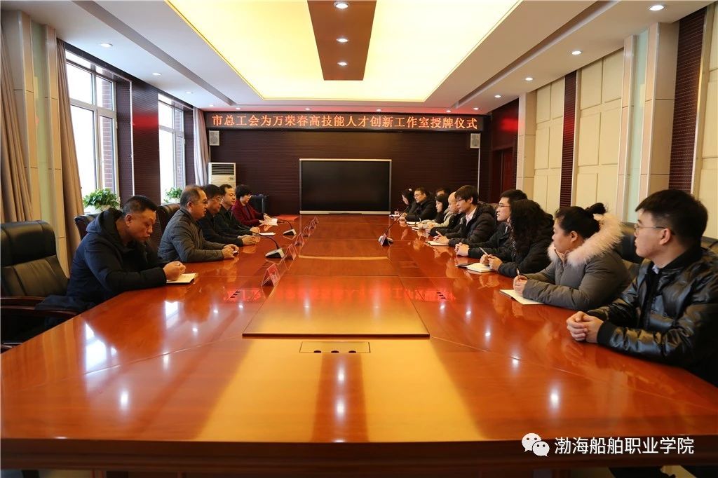 12月27日上午,葫蘆島市總工會為萬榮春高技能人才工作室授牌儀式在學(xué)院辦公樓三樓會議室舉行。市總工會副主席徐景友、文教工委主任陳新宇,我院黨委書記李榮軍、黨委副書記費厚第、院工會副主席張麗艷、材料工程系黨總支書記劉興永、萬榮春博士及工作室全體成員出席授牌儀式。