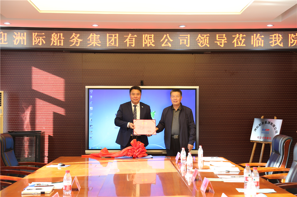 高文良院長與譚軍經(jīng)理代表校企雙方簽署《渤海船舶職業(yè)學院與洲際船務集團有限公司校企合作協(xié)議書》,并為“洲際船務集團有限公司校企合作單位”揭牌。