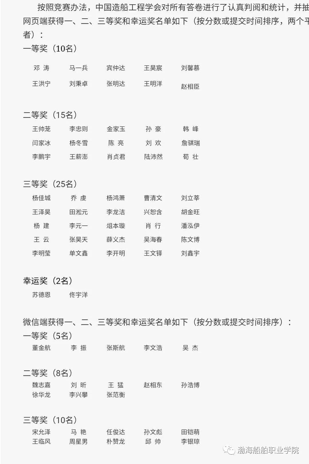 本次大賽由中國(guó)科協(xié)科普部、中國(guó)造船工程學(xué)會(huì)、中國(guó)航海學(xué)會(huì)主辦,中國(guó)造船工程學(xué)會(huì)、中國(guó)航海學(xué)會(huì)、《艦船知識(shí)》雜志社、中國(guó)船舶在線網(wǎng)站承辦,旨在紀(jì)念 4月23日“海軍日”,全面落實(shí)國(guó)家《科學(xué)素質(zhì)綱要》,培養(yǎng)廣大師生熱愛國(guó)防,關(guān)心國(guó)防,樹立從軍報(bào)國(guó)、建設(shè)祖國(guó)強(qiáng)大海防的意識(shí)。本次比賽在線進(jìn)行,中國(guó)造船工程學(xué)會(huì)對(duì)20多個(gè)省、自治區(qū)、直轄市的參賽者答卷認(rèn)真判閱和統(tǒng)計(jì),評(píng)出網(wǎng)頁(yè)端和微信端一、二、三等獎(jiǎng)。