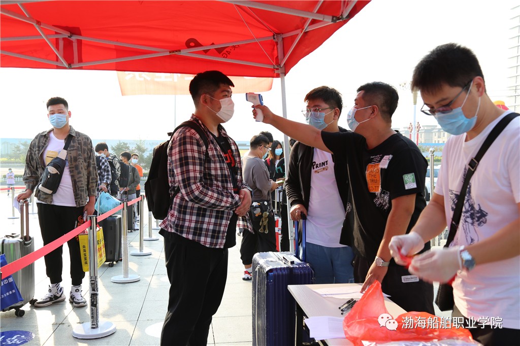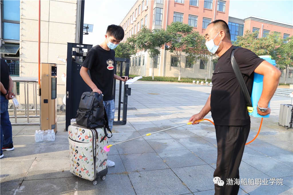 學(xué)院迎接學(xué)生返校的各崗位工作人員、志愿者同學(xué)們一早就全部到崗,靜候同學(xué)們歸來。同學(xué)們佩戴口罩,有序間隔排隊(duì),通過檢測體溫、查驗(yàn)健康碼、登記等流程后進(jìn)入校園。進(jìn)入校門后,工作人員對同學(xué)們所帶行李、備品進(jìn)行消毒。現(xiàn)場秩序井然。