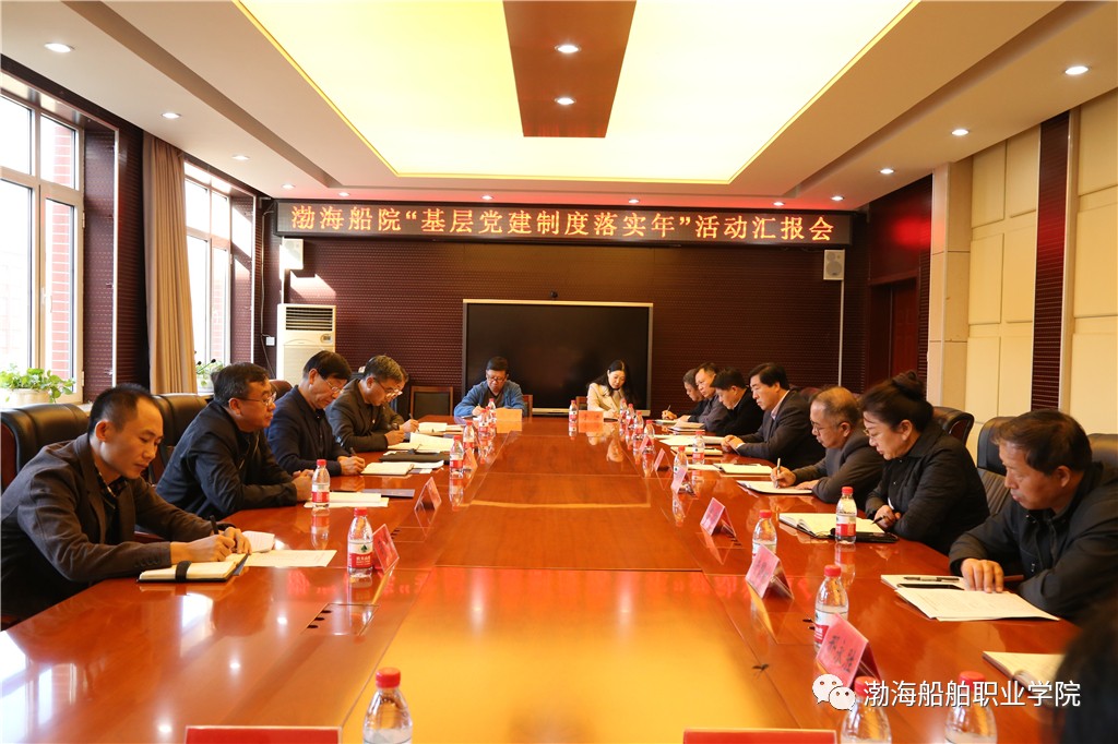 檢查組對我院基層黨建工作相關資料進行檢查,到各系與各支部書記、一線教師黨員進行座談,并在三樓會議室召開渤海船院“基層黨建工作落實年”活動匯報會,會議由市委教育工委專職副書記巴斌主持。