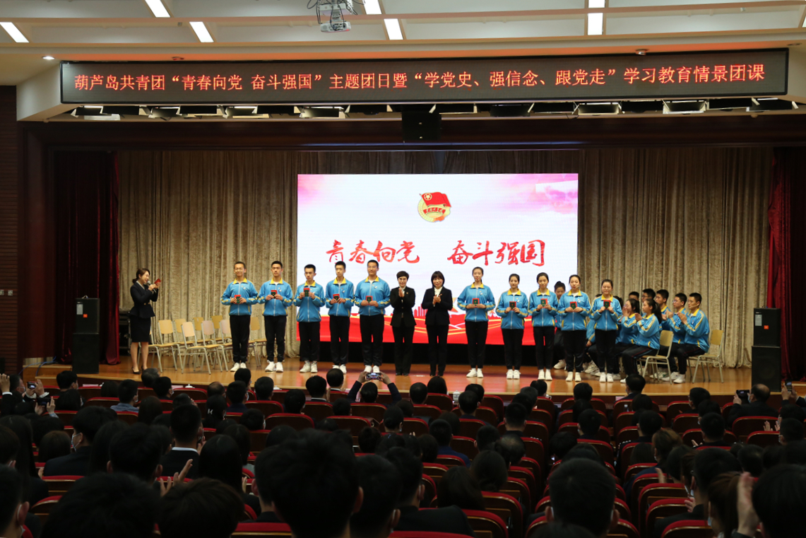 “五四”青年節(jié)到來之際,4月28日上午,葫蘆島共青團在渤海船舶職業(yè)學(xué)院開展葫蘆島共青團“青春向黨 奮斗強國”主題團日暨“學(xué)黨史、強信念、跟黨走”學(xué)習(xí)教育情景團課。市委書記王大南,市委常委、宣傳部長冬梅,市人大常委會副主任姜淑艷,市政協(xié)副主席畢榮昌出席活動。市青年工作聯(lián)席會議成員單位相關(guān)領(lǐng)導(dǎo)、團市委常委、委員和各縣(市)區(qū)團委、部分駐葫企事業(yè)單位團委、市直學(xué)校團委負(fù)責(zé)同志,少先隊輔導(dǎo)員,我院黨委書記李榮軍、團委書記方興與團員青年代表共計280人參加活動。