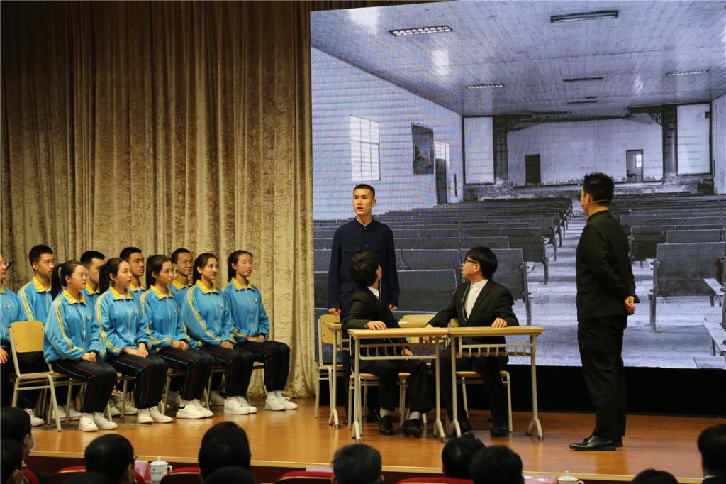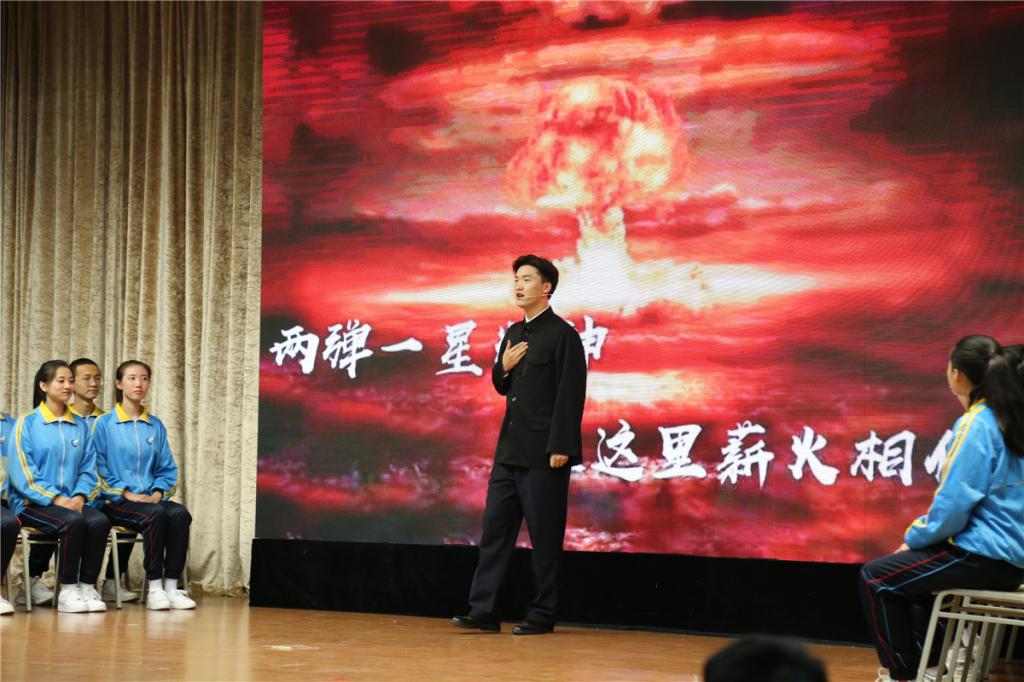 我院鞠旭東、史清澤等同學(xué)表演情景劇《國之功勛》,展現(xiàn)了“兩彈一星”元勛錢學(xué)森、鄧稼先的事跡。
