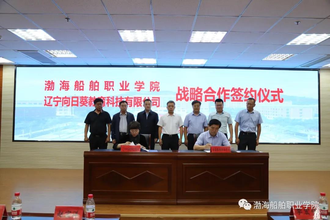 我院常務(wù)副院長鄭海濤與遼寧向日葵教育科技有限公司CEO李艷飛共同簽署《渤海船舶職業(yè)學院與遼寧向日葵教育科技有限公司戰(zhàn)略合作協(xié)議》。