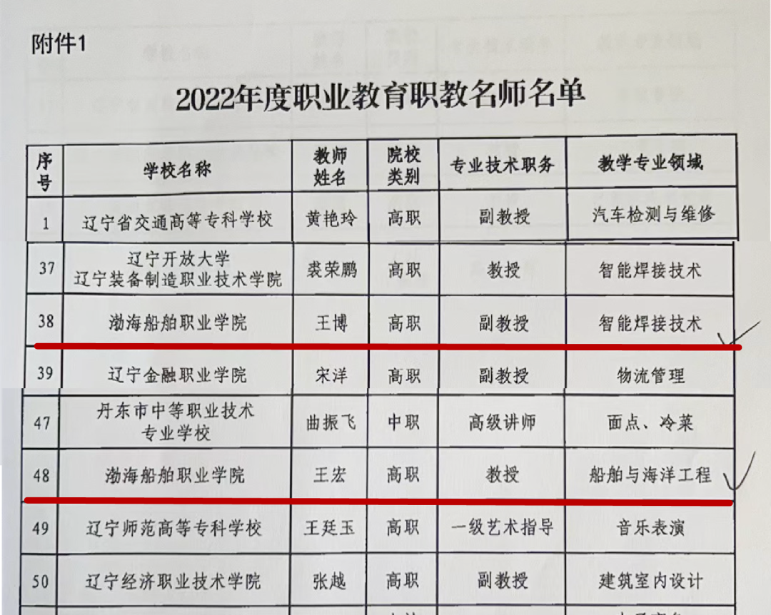 近日,遼寧省教育廳公布2022年度職業(yè)教育興遼職教名師、專業(yè)帶頭人和骨干教師名單。經過學校推薦申報、專家評審、網上公示,確定我院王博、王宏老師為2022年度職業(yè)教育職教名師,蔡新梅、李琦老師為2022年度職業(yè)教育專業(yè)帶頭人,萬榮春、陳佶老師為2022年度職業(yè)教育骨干教師。