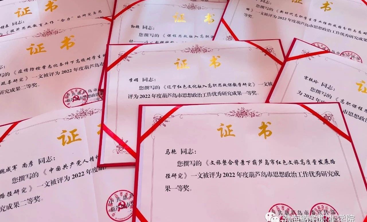 近日,2022年度葫蘆島市思想政治工作優(yōu)秀研究成果評(píng)選結(jié)束,全市共有159項(xiàng)研究成果獲獎(jiǎng)。我院有12項(xiàng)研究成果分別被評(píng)為葫蘆島市思想政治工作優(yōu)秀研究成果一、二、三等獎(jiǎng)。