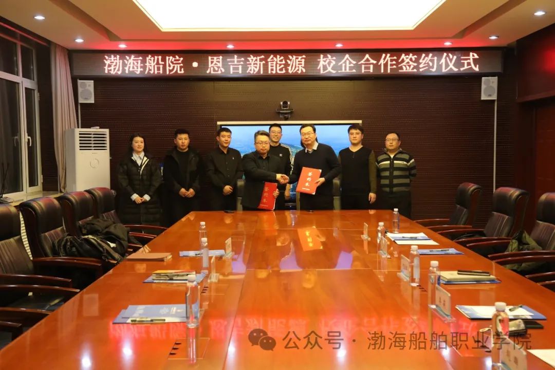 1月9日,渤海船舶職業(yè)學(xué)院與內(nèi)蒙古恩吉新能源有限公司校企合作簽約儀式在辦公樓三樓會議室舉行。內(nèi)蒙古恩吉新能源有限公司總經(jīng)理吳曉雷、副總經(jīng)理趙樹森,我院院長何滿輝、電氣工程系主任王宇、校企合作辦主任李莉出席了簽約儀式。