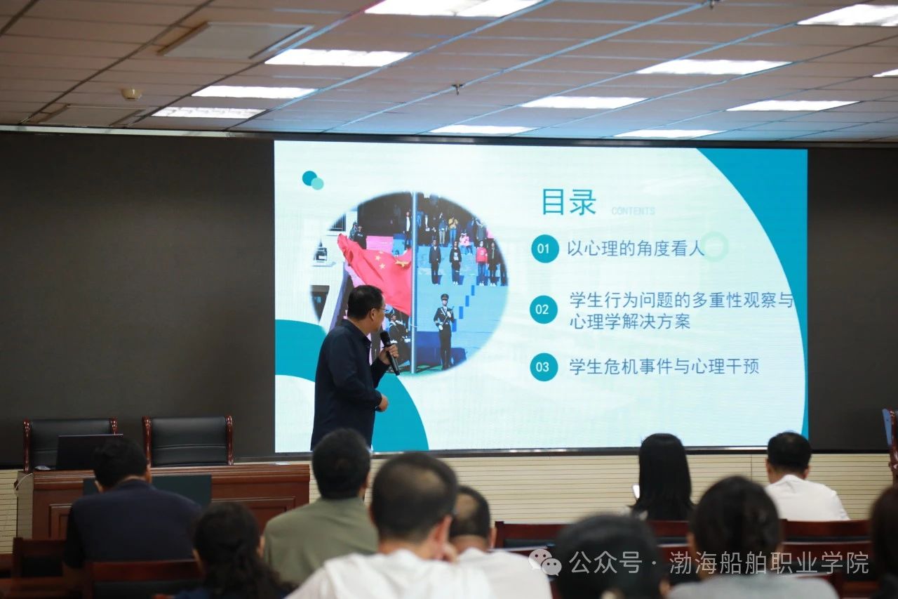 遼寧省高校心理健康教育名師張日冉教授為全體輔導員老師從“以心理的角度看人”、“學生行為問題的多重性觀察與心理學解決方案”、“學生危機事件與心理干預”三方面為全體輔導員老師作專題培訓,涵蓋學生常見心理問題的識別、應對策略以及心理健康教育的方法和技巧等方面內容,通過生動的案例分析和互動交流,讓輔導員們進一步了解專業(yè)的心理健康知識,掌握有效的心理干預技巧,為更好地開展心理輔導工作提供有力的支持。