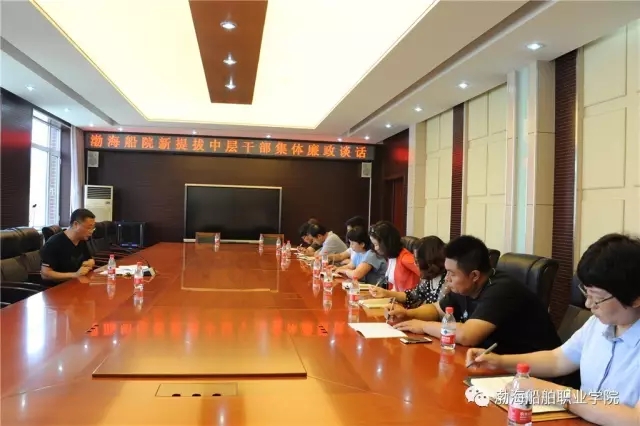 會上,全體新提拔中層干部在《渤海船舶職業(yè)學(xué)院新任中層干部黨風(fēng)廉政承諾書》、《渤海船院任職干部廉政談話記錄表》上鄭重簽字。