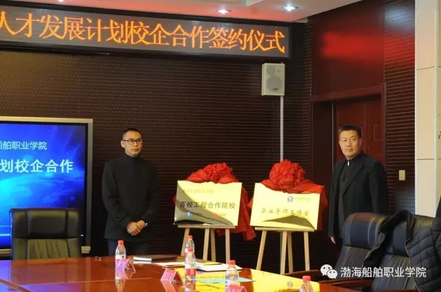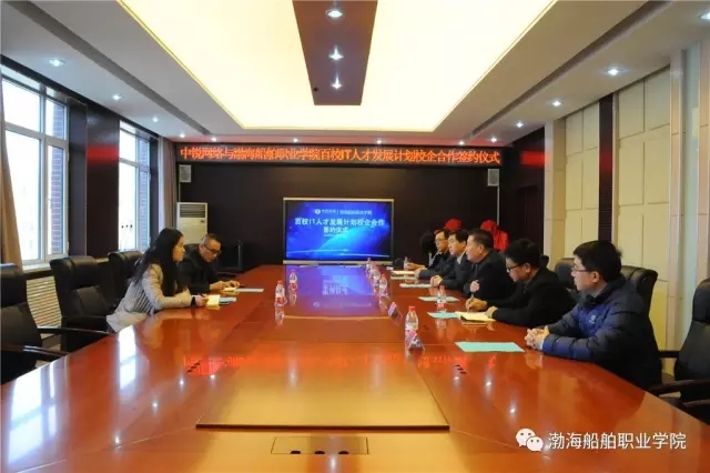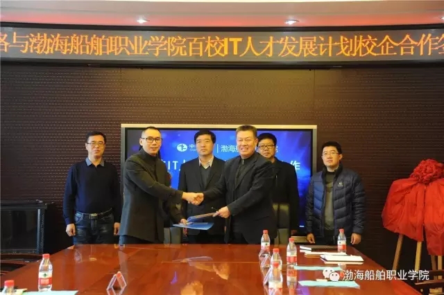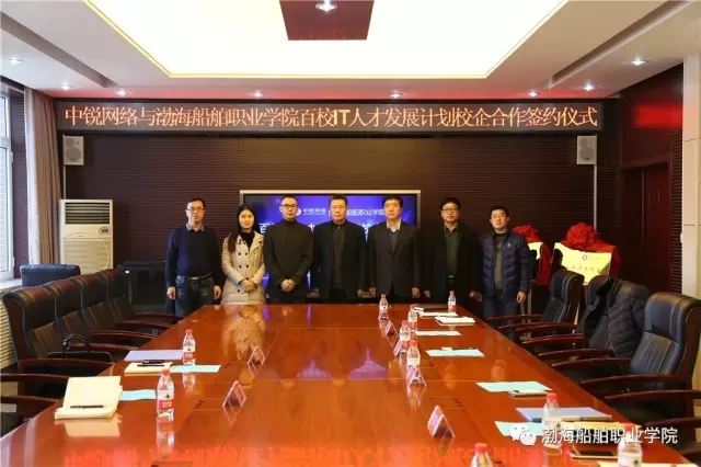 高文良院長與楊坤總經理共同簽署中銳網絡與渤海船舶職業(yè)學院百校IT人才發(fā)展計劃校企合作協(xié)議,并舉行揭牌授牌儀式。