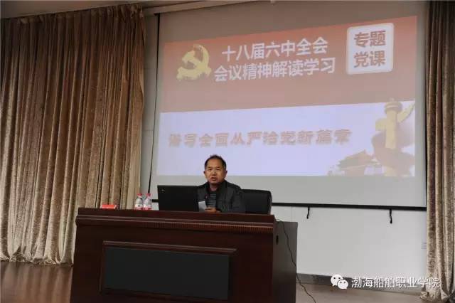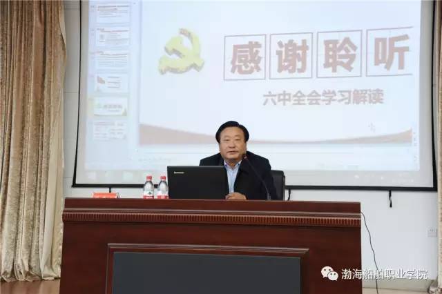 王慶洲書記在報(bào)告會上講話,他說,學(xué)習(xí)宣傳貫徹六中全會精神,是學(xué)院當(dāng)前和今后一個(gè)時(shí)期的重要政治任務(wù)。他就我院六中全會精神的學(xué)習(xí)貫徹提出五點(diǎn)意見:一是要明確習(xí)近平總書記在全黨的核心地位是黨和人民的選擇。二是要把握好全會提出的新思想、新要求、新舉措。三是要切實(shí)增強(qiáng)“四個(gè)意識”。四是要切實(shí)加強(qiáng)干部隊(duì)伍建設(shè)。五是要做落實(shí)全會精神的知行合一者。