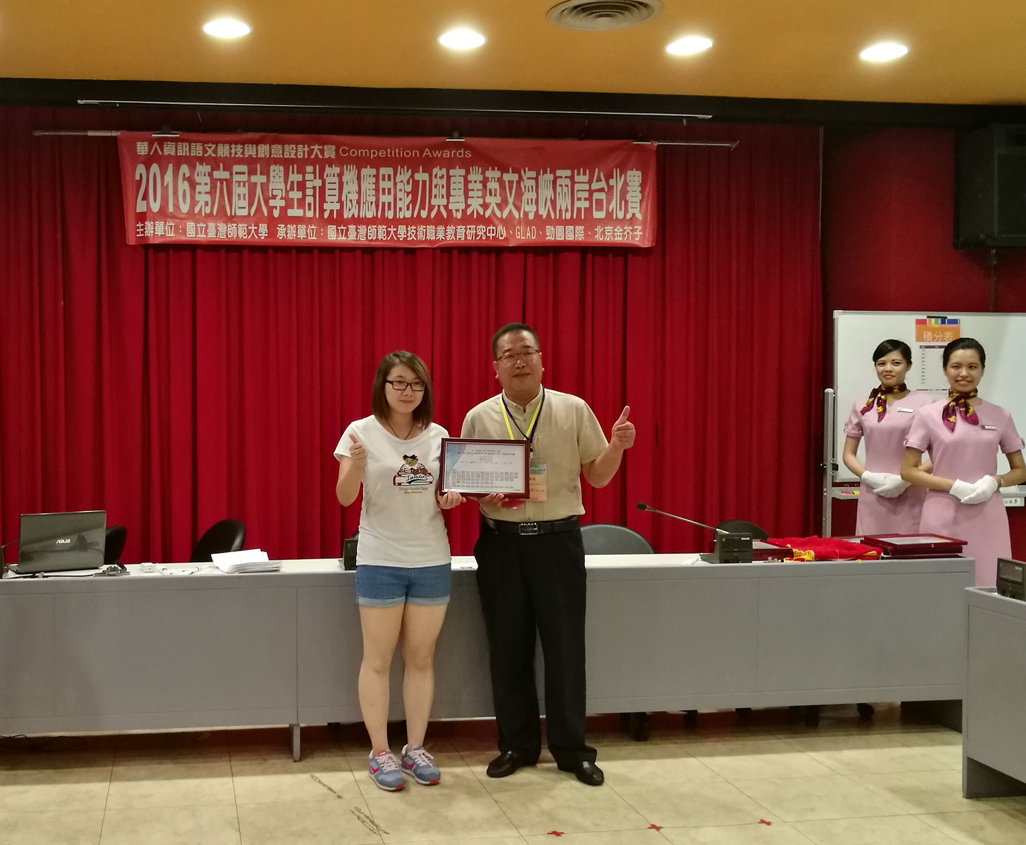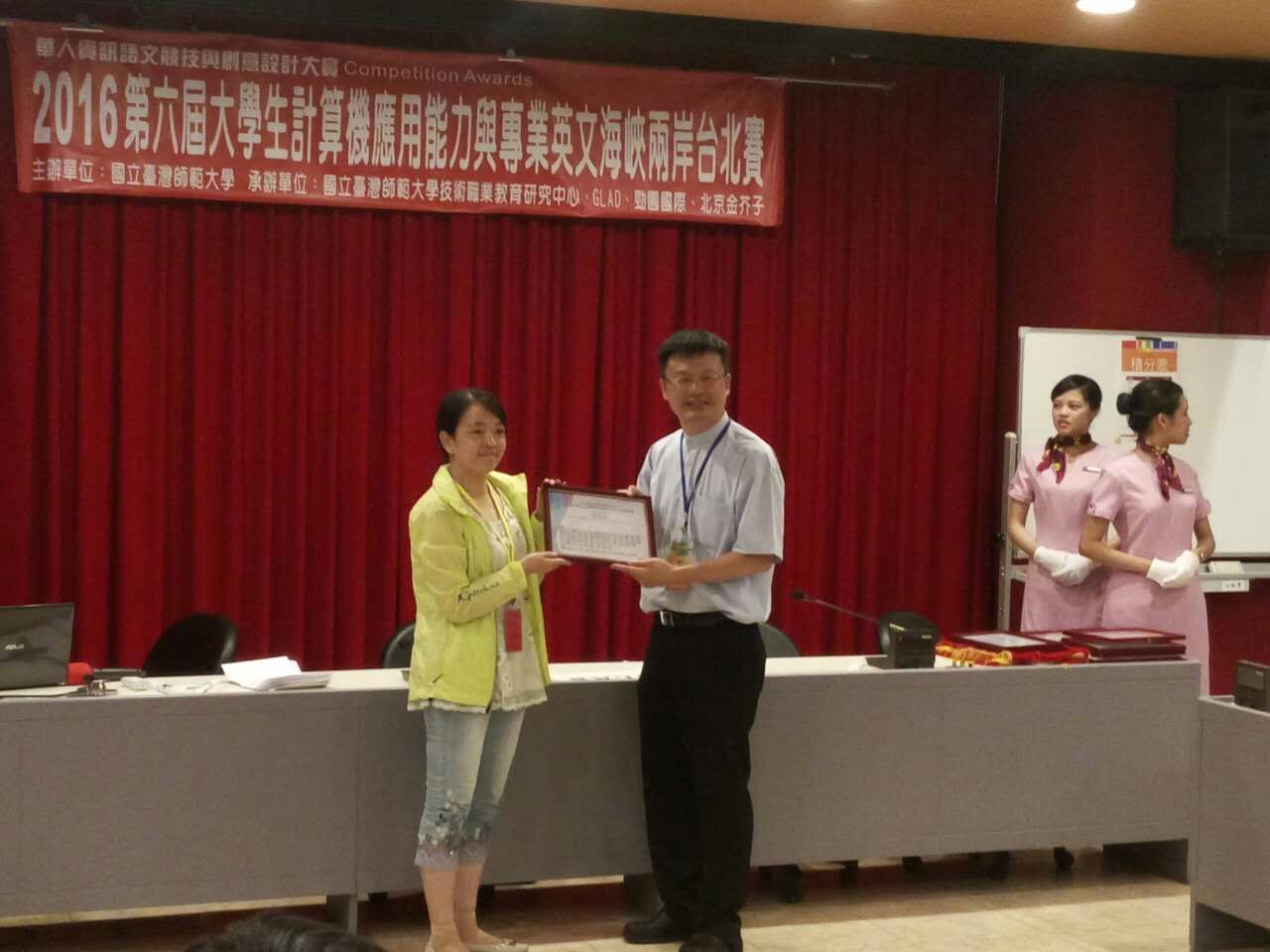 我院派出了以院辦李志民主任為領(lǐng)隊,信息工程系李林老師為指導(dǎo)教師,信息工程系馬蓉平老師和15G651夏曉威同學(xué)為參賽選手的代表隊參加此次海峽賽,經(jīng)過激烈的角逐,馬蓉平老師獲電子商務(wù)應(yīng)用能力(IBA)教師組特等獎,夏曉威同學(xué)獲計算機(jī)綜合應(yīng)用能力(ICT)高職組三等獎、商務(wù)專業(yè)應(yīng)用能力(BAP)高職組三等獎,學(xué)院獲主辦方頒“計算機(jī)應(yīng)用能力與專業(yè)英文能力”兩岸教育交流貢獻(xiàn)獎。