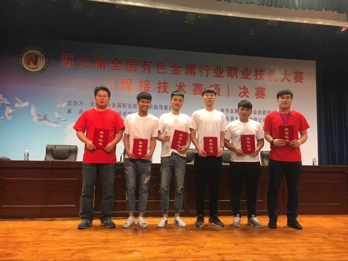 6月25—28日,第七屆全國(guó)有色金屬行業(yè)職業(yè)院校技能大賽(焊接技術(shù)賽項(xiàng))決賽在哈爾濱職業(yè)技術(shù)學(xué)院舉行,全國(guó)17所職業(yè)院校近百名選手同臺(tái)競(jìng)技。我院材料工程系14G514班劉星彤同學(xué)獲得一等獎(jiǎng),14G516班張鋒邦同學(xué)獲得二等獎(jiǎng),14G511班楊文碩、14G516班宋迪聰獲得三等獎(jiǎng),材料工程系趙麗玲、王子瑜老師獲得優(yōu)秀指導(dǎo)教師獎(jiǎng),學(xué)院榮獲團(tuán)體二等獎(jiǎng)。