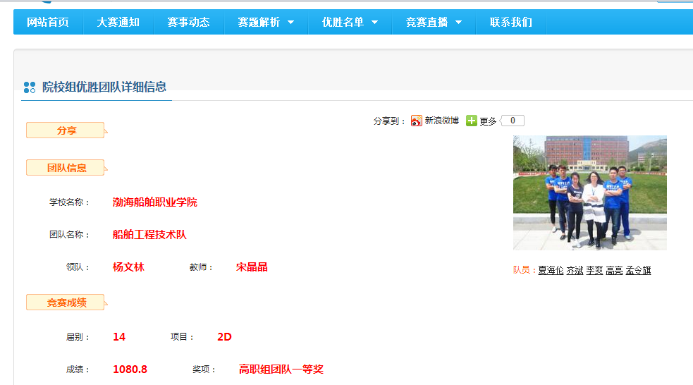 經(jīng)過激烈角逐后,我院代表隊共取得2個團(tuán)隊一等獎,2個團(tuán)隊二等獎,5個團(tuán)隊三等獎,1個團(tuán)隊優(yōu)秀獎的優(yōu)異成績!特別是14G161班夏海倫同學(xué)取得了全國第二名的好成績!一等獎團(tuán)隊的指導(dǎo)老師船舶工程系宋晶晶老師、機(jī)電工程系李琦老師榮獲優(yōu)秀指導(dǎo)教師。