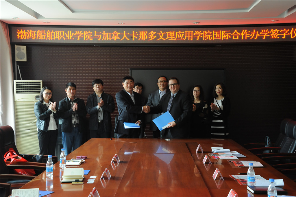 孫元政院長與理查德院長共同簽署了《渤海船舶職業(yè)學(xué)院和卡納多文理應(yīng)用學(xué)院國際合作辦學(xué)協(xié)議》。