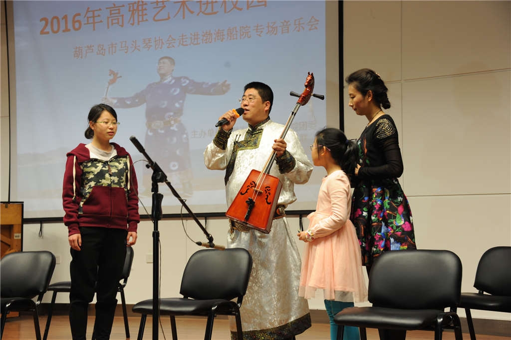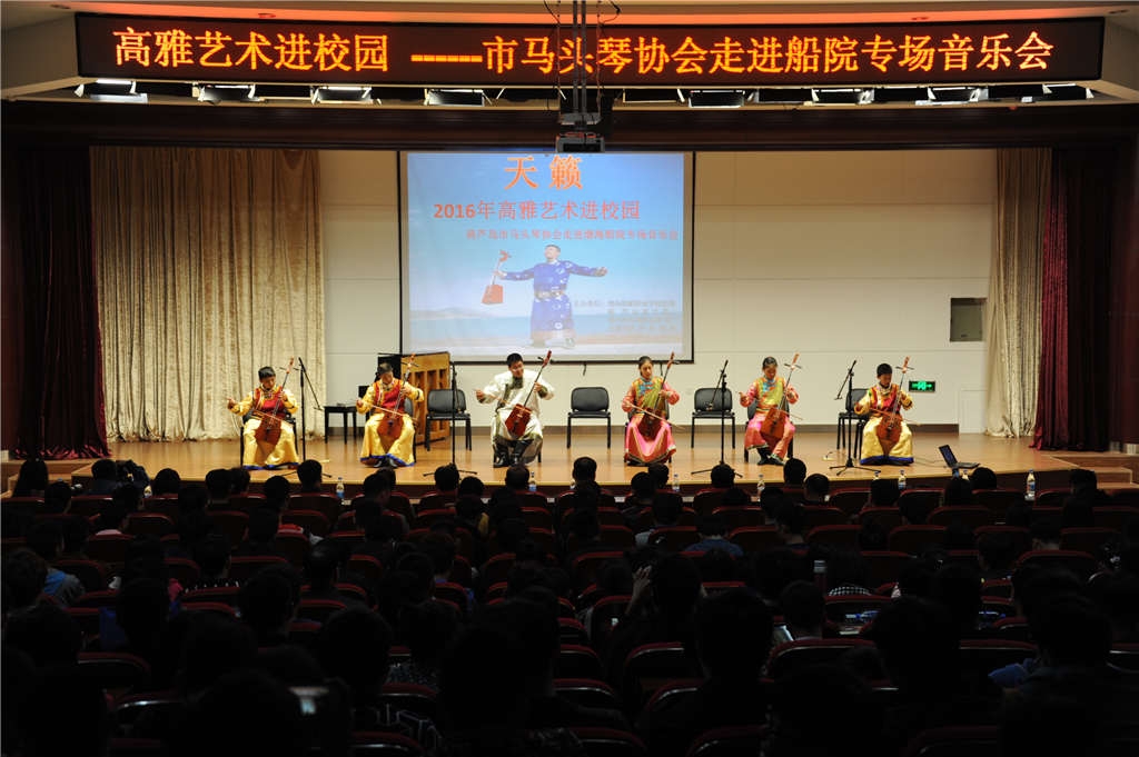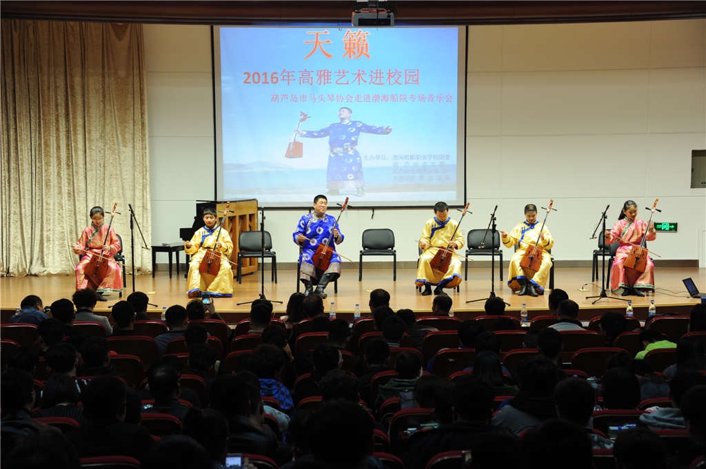 為弘揚(yáng)民族文化,豐富學(xué)生校園文化生活,提高學(xué)生藝術(shù)修養(yǎng)和人文修養(yǎng),3月31日晚七點(diǎn),由渤海船院團(tuán)委、葫蘆島市文聯(lián)、葫蘆島文聯(lián)曲藝家協(xié)會(huì)、葫蘆島連山區(qū)馬頭琴協(xié)會(huì)聯(lián)合舉辦的高雅藝術(shù)進(jìn)校園之“天籟”馬頭琴音樂會(huì)在我院信息樓報(bào)告廳舉行。