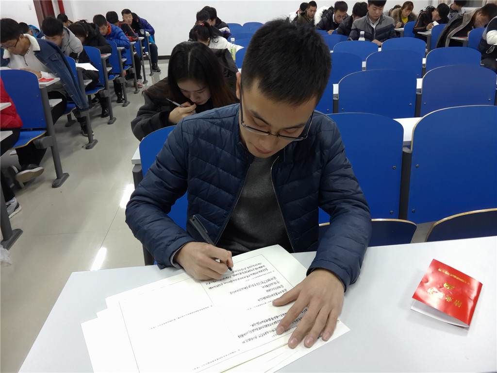 11月18日晚,我院第29期入黨積極分子結(jié)業(yè)考試在5號樓B座共7個教室順利舉行,全院500名入黨積極分子參加了此次考試,部分思政課教師、輔導(dǎo)員及相關(guān)黨務(wù)工作人員參加了監(jiān)考。本期培訓(xùn)自10月中旬開班至今,為期一個月,共安排八次理論課,以集中授課與座談、討論相結(jié)合,學員們通過課堂教學學習,系統(tǒng)地了解了黨的發(fā)展歷程,掌握了黨的基本知識,加深了對黨史、黨章、黨員的權(quán)利與義務(wù)等知識的理解和認識,端正了入黨動機,堅定了入黨的信心和決心。