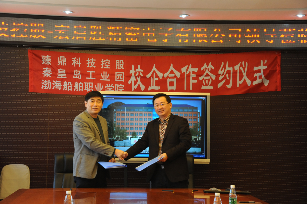 2015年3月23日上午11點,我院與臻鼎科技控股股份有限公司隆重舉行校企合作簽約儀式。臻鼎科技控股股份有限公司副總經理崔世杰,校企合作處處長王亞楠,我院院長孫元政,副院長叢培亭,及有關部門領導參見了簽約儀式。
