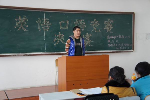 為了豐富大學(xué)生的校園生活,激發(fā)我院學(xué)生英語(yǔ)學(xué)習(xí)興趣,提高英語(yǔ)口語(yǔ)水平,同時(shí)儲(chǔ)備全國(guó)高職學(xué)生技能大賽參賽人才,2013年11、12月,由教務(wù)處、基礎(chǔ)部外語(yǔ)教研室、院團(tuán)委共進(jìn)社英語(yǔ)社團(tuán)共同舉辦的大學(xué)生英語(yǔ)口語(yǔ)競(jìng)賽拉開(kāi)了帷幕。此次競(jìng)賽由基礎(chǔ)部英語(yǔ)教研室李桂杰、王銳等十多位教師擔(dān)任評(píng)委,由團(tuán)委共進(jìn)社英語(yǔ)社團(tuán)的骨干學(xué)生進(jìn)行相關(guān)服務(wù)工作。