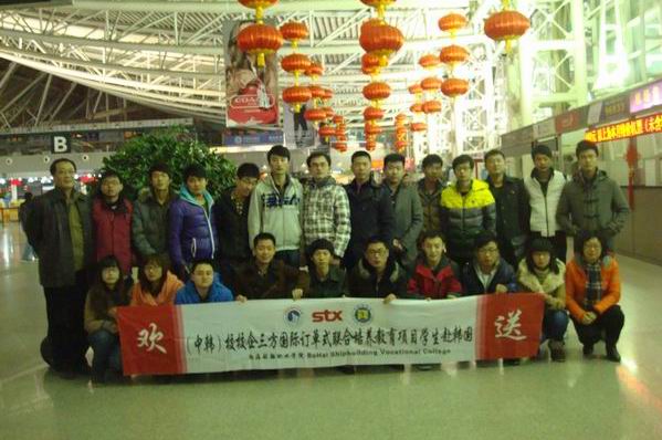 根據(jù)渤海船院與韓國(guó)巨濟(jì)大學(xué)及STX(大連)造船廠開(kāi)展的聯(lián)合培養(yǎng)教育項(xiàng)目計(jì)劃,第三批22名學(xué)生通過(guò)了2013年1月8日韓國(guó)巨濟(jì)大學(xué)組織的韓語(yǔ)測(cè)試,已赴韓國(guó)繼續(xù)學(xué)習(xí)。學(xué)院教育發(fā)展中心主任劉立國(guó)帶隊(duì)在沈陽(yáng)桃仙機(jī)場(chǎng)歡送并提出了希望。
