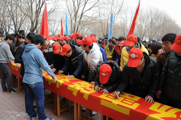 學(xué)生會(huì)主席祝闖宣讀了倡議書(shū),動(dòng)力工程系團(tuán)委副書(shū)記袁船長(zhǎng)代表學(xué)院全體志愿者發(fā)言。最后,所有到場(chǎng)的領(lǐng)導(dǎo)老師以及志愿者代表在“弘揚(yáng)雷鋒精神,做全面發(fā)展一代新人”的條幅上簽名。