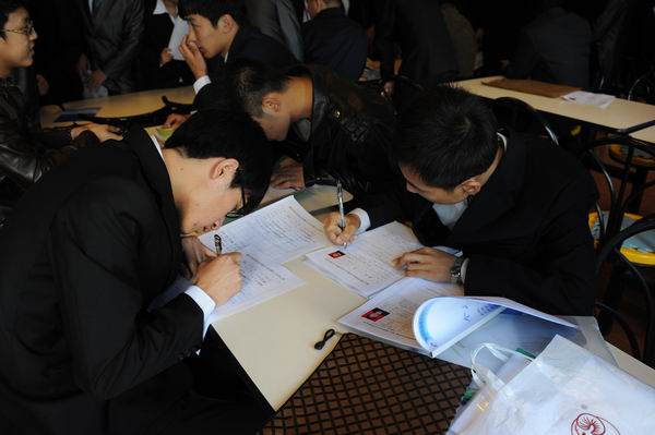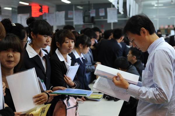 我院2348名2013屆畢業(yè)生準備充分,著裝整潔,簡歷清晰,在意向單位的展臺前與對方認真交流。兩天時間里,約60%的畢業(yè)生與用人單位簽定了就業(yè)意向。(宣傳部)