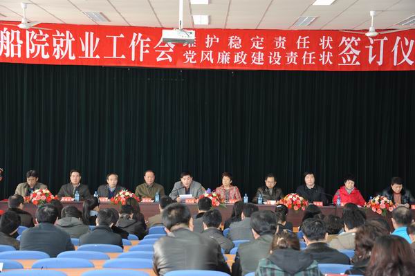 3月12日下午,在龍灣校區(qū)綜合樓報告廳,我院隆重舉行畢業(yè)生就業(yè)工作總結(jié)表彰大會暨維護(hù)安全穩(wěn)定、黨風(fēng)廉政建設(shè)責(zé)任狀簽訂儀式,院領(lǐng)導(dǎo)芮柏苓、孫元政、費厚第、董樹剛、鄭海濤、叢培亭、蔡立平、李福生、組織部長高俊東、宣傳部長劉鵬翔出席大會并在主席臺就坐,中層干部、學(xué)工人員、2011屆2012屆畢業(yè)班班主任、受表彰人員等100多人參加了會議,大會由主管就業(yè)工作的副院長鄭海濤主持。