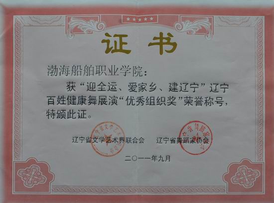 在遼寧省文學(xué)藝術(shù)界聯(lián)合會、省舞蹈家協(xié)會主辦的“迎全運(yùn)、愛家鄉(xiāng)、建遼寧”遼寧百姓健康舞展演活動中,鄧福昌、楊紅英、劉揚(yáng)三位老師由于參與輔導(dǎo)的節(jié)目《龍船調(diào)》、《玫瑰玫瑰我愛你》、《軍歌聲聲》成績優(yōu)異,分別榮獲“優(yōu)秀輔導(dǎo)教師”稱號,我院榮獲“優(yōu)秀組織獎”稱號。(宣傳部)