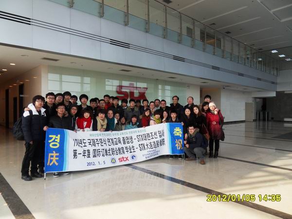 我院與韓國巨濟大學、STX(大連)造船有限公司三方共同實施的《中韓“校校企”國際訂單式聯(lián)合培養(yǎng)教育項目》(以下簡稱“項目”)首批35名項目學生圓滿完成了在韓國巨濟大學1年的學業(yè),并按項目要求于2012年1月5日順利就職于STX(大連)造船有限公司技術管理設計崗位。