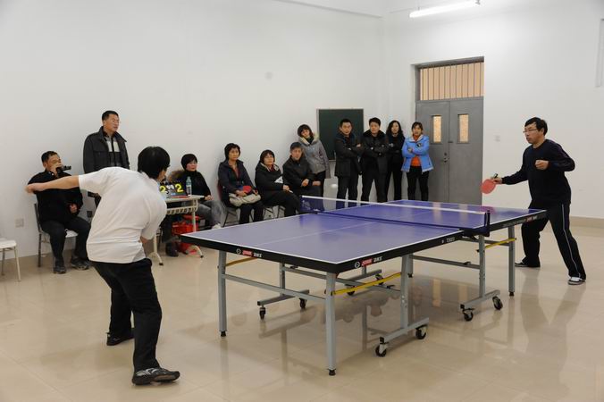 12月8日,歷時一個月的我院第五屆教職工乒乓球賽圓滿結(jié)束,劉軍(后服中心)獲得男子單打冠軍,周明遠(yuǎn)(材料系)獲亞軍,王東(體育部)獲第三名;王紅(體育部)獲女子單打冠軍,李桂杰(基礎(chǔ)部)獲亞軍,楊麗(師范系)獲第三名;王東、王紅獲混雙冠軍,張俊杰、李桂杰獲混雙亞軍,姜延興、楊松梅獲混雙第三名。基礎(chǔ)部、體育部、師范系、教務(wù)教發(fā)、蓮花校區(qū)、組織紀(jì)檢財務(wù)科技等工會獲優(yōu)秀組織獎。