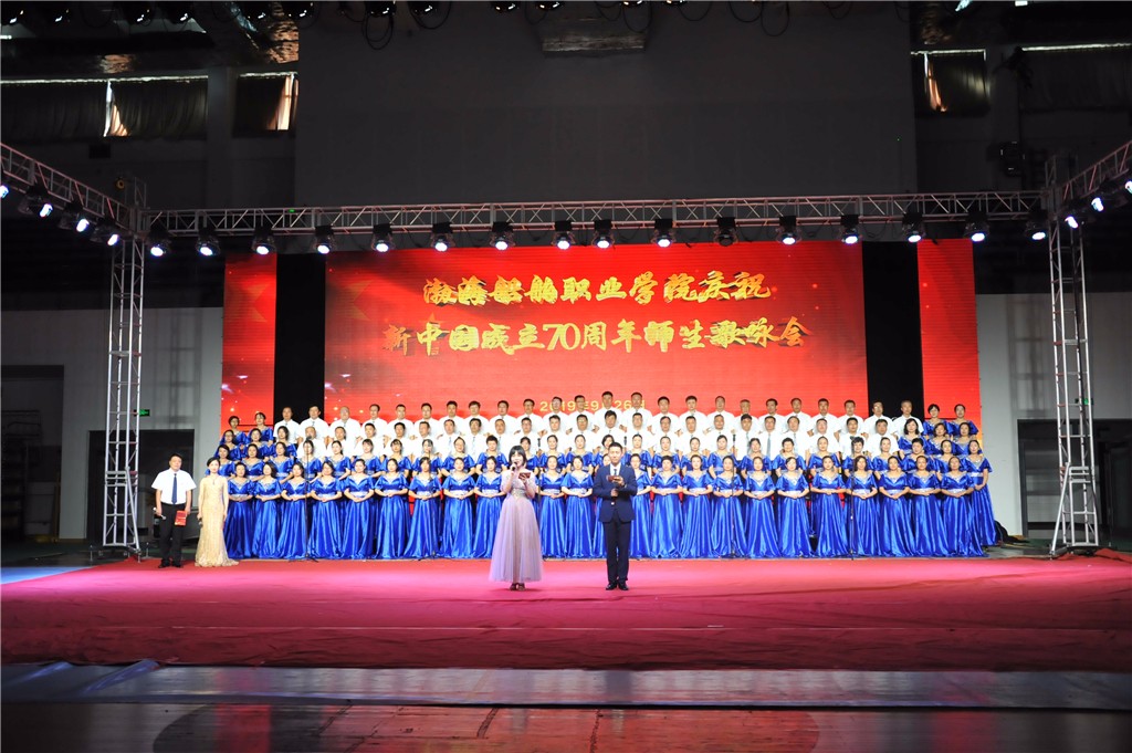 為深入學(xué)習(xí)貫徹習(xí)近平新時代中國特色社會主義思想和黨的十九大精神,慶祝新中國成立70周年,激發(fā)全院師生愛國熱情,引導(dǎo)師生共同書寫學(xué)院“雙高”建設(shè)新篇章,9月26日,我院在體育館舉行慶祝新中國成立70周年師生歌詠會。全院兩千余名師生共同觀看了歌詠會。