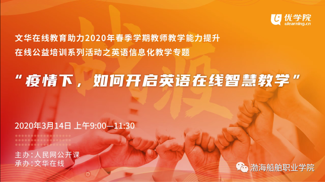為響應(yīng)教育部號召,切實實現(xiàn)高校在疫情防控期間“停課不停教,停課不停學(xué)”,文華在線聯(lián)合人民網(wǎng)公開課,推出“優(yōu)學(xué)院教師教學(xué)能力提升公益直播項目”。3月28日,全國人大代表,我院基礎(chǔ)部外語教研室主任李桂杰教授應(yīng)邀參加了該在線培訓(xùn)系列活動中英語信息化教學(xué)專題——“英語智慧教材與在線教學(xué)實踐交流”線上培訓(xùn)活動。