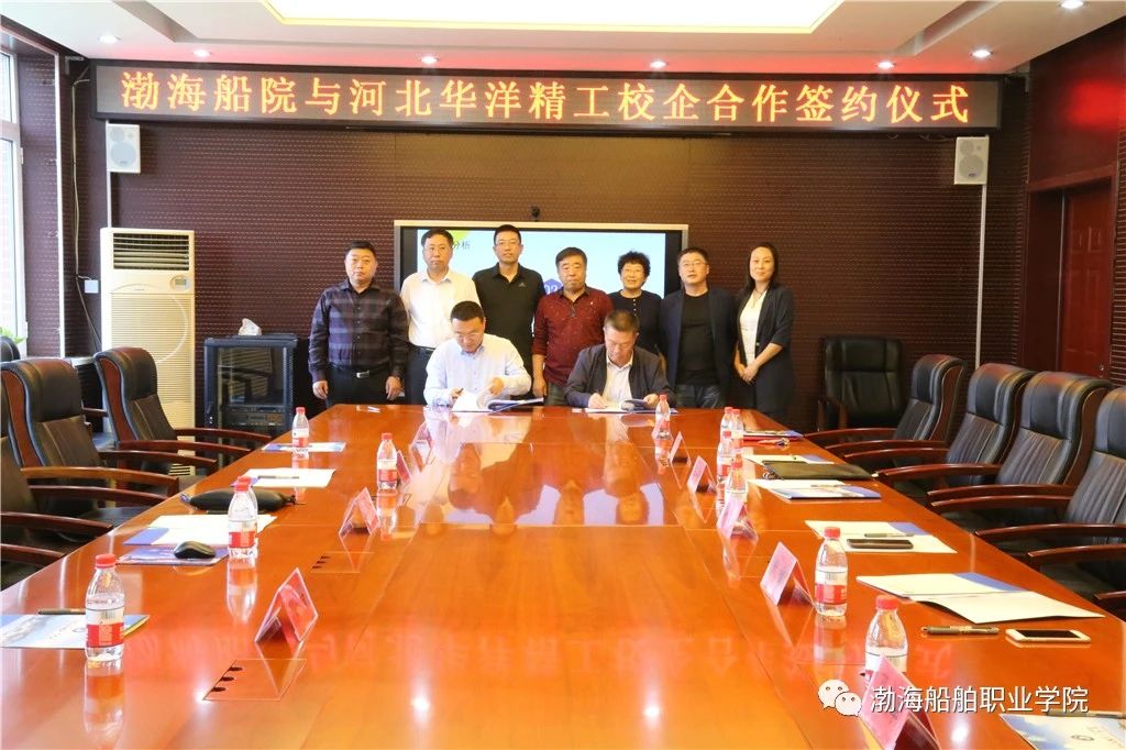 雙方就校企合作共同關注的問題進行交流和研討并達成共識。高文良院長與宋明總經理代表校企雙方簽署了《渤海船舶職業(yè)學院與河北華洋精工機械制造有限公司校企合作協(xié)議書》。