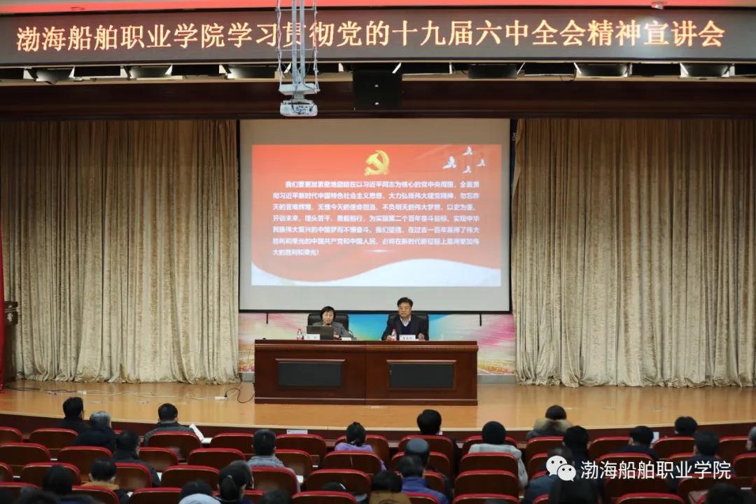 12月28日,渤海船舶職業(yè)學院學習貫徹黨的十九屆六中全會精神宣講會在學術報告廳召開,全體院領導、全體中干、專職思政課教師、組織員、民主黨派負責人、各系(士官生大隊)團委書記出席了報告會。會議由黨委書記李榮軍主持。思政教研部殷紅教授作專題宣講報告。