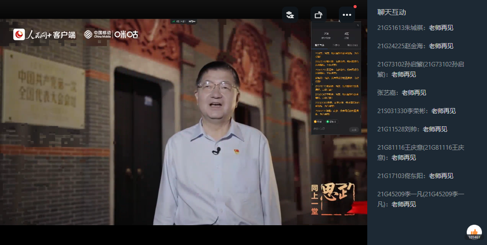 直播中,天津大學(xué)馬克思主義學(xué)院院長顏曉峰利用實景教學(xué),以中國共產(chǎn)黨“站起來——富起來——強起來”的百年崢嶸歷程為線,帶我們回望了中國特色社會主義的開創(chuàng)、堅持、捍衛(wèi)與發(fā)展。