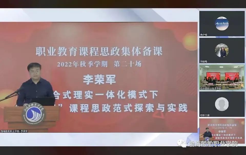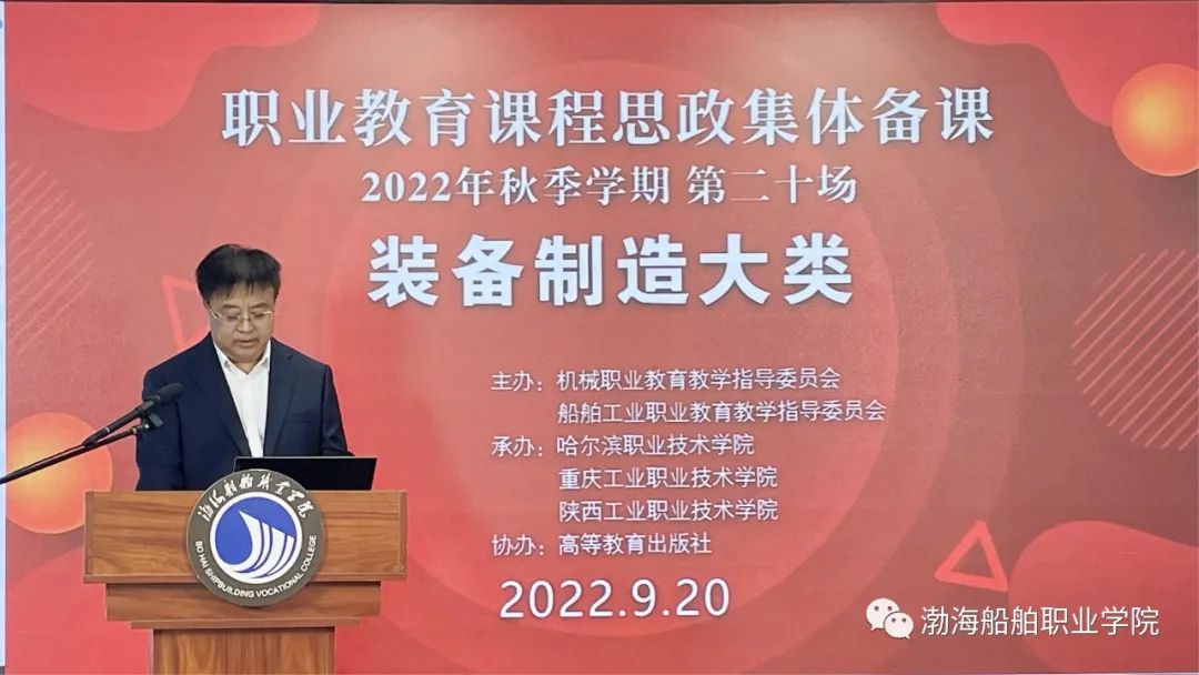 9月20日,2022年度全國職業(yè)院校裝備制造大類課程思政集體備課會在智慧職教云平臺召開。全國船舶工業(yè)職業(yè)教育教學(xué)指導(dǎo)委員會副主任委員,我院黨委書記李榮軍受全國機械職業(yè)教育教學(xué)指導(dǎo)委員會、全國船舶工業(yè)職業(yè)教育教學(xué)指導(dǎo)委員會邀請作致辭講話,并作《混合式理實一體化模式下“5融6同”課程思政范式探索與實踐》主題報告。