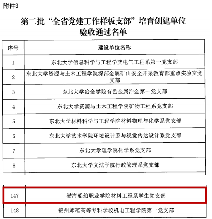 近日,省委教育工委印發(fā)《關(guān)于公布第二批全省新時代黨建工作示范高校、標(biāo)桿院系、樣板支部培育創(chuàng)建單位驗收通過名單的通知》,經(jīng)過建設(shè)單位對標(biāo)自查總結(jié)、省委教育工委組織專家評審、會議審議通過,我院材料工程系學(xué)生黨支部順利通過第二批全省黨建工作樣板支部培育創(chuàng)建單位驗收。
