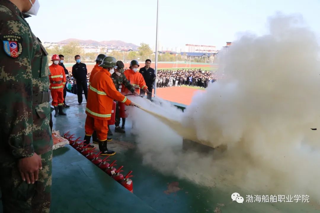 隨后,全體參加演習(xí)的師生集合到體育場(chǎng)。安全保衛(wèi)處消防辦主任王哲在校衛(wèi)隊(duì)隊(duì)員的配合下,為師生講解并演示了滅火器及室內(nèi)消防栓的使用方法。