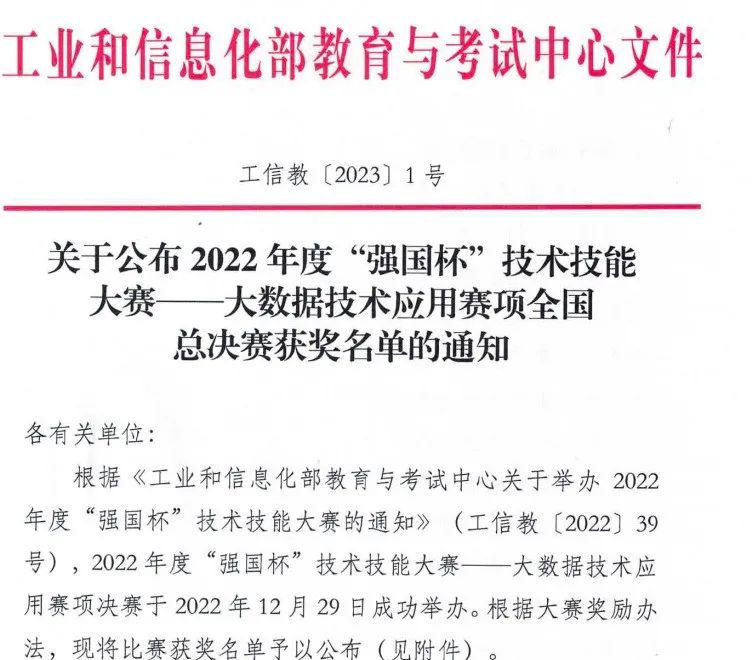 近日,工業(yè)和信息化部教育與考試中心公布了2022年“強(qiáng)國(guó)杯”技術(shù)技能大賽——大數(shù)據(jù)技術(shù)應(yīng)用賽項(xiàng)全國(guó)總決賽獲獎(jiǎng)名單。本次大賽從資格賽、半決賽到?jīng)Q賽歷時(shí)6個(gè)月,全國(guó)近3000名選手參賽。經(jīng)過激烈角逐,我院信息工程系王勝宇同學(xué)榮獲2022年“強(qiáng)國(guó)杯”技術(shù)技能大賽——大數(shù)據(jù)技術(shù)應(yīng)用賽項(xiàng)全國(guó)總決賽學(xué)生組三等獎(jiǎng)。