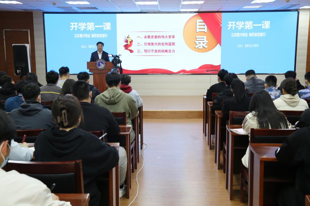 “開(kāi)學(xué)第一堂思政課”活動(dòng)由思政教研部主任王日升主持。他要求同學(xué)們充分認(rèn)識(shí)到:中國(guó)共產(chǎn)黨百年來(lái)團(tuán)結(jié)帶領(lǐng)中國(guó)人民所進(jìn)行的一切奮斗,就是為了把我國(guó)建設(shè)成為現(xiàn)代化強(qiáng)國(guó),實(shí)現(xiàn)中華民族偉大復(fù)興。“厚植家國(guó)情懷、涵養(yǎng)進(jìn)取品格,以?shī)^斗姿態(tài)激揚(yáng)青春,不負(fù)時(shí)代、不負(fù)韶華”是新時(shí)代大學(xué)生的使命擔(dān)當(dāng)。