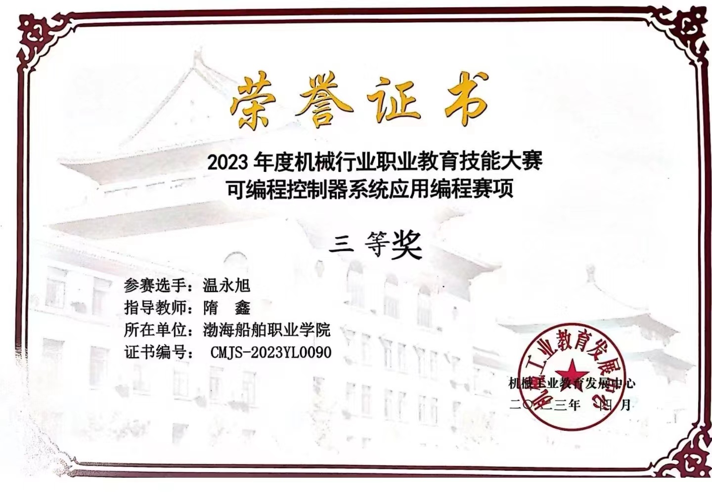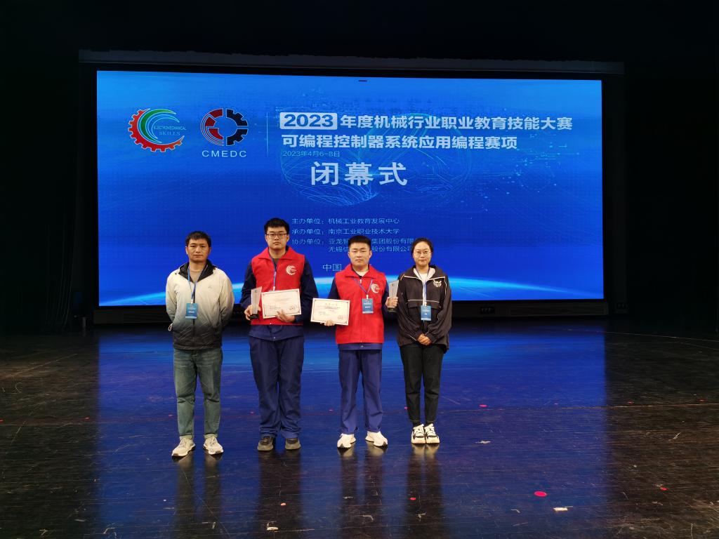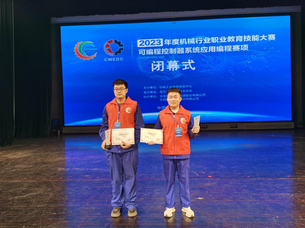 4月7日、8日,2023年度機(jī)械行業(yè)職業(yè)教育技能大賽“可編程控制器系統(tǒng)應(yīng)用編程”賽項(xiàng)在南京工業(yè)職業(yè)技術(shù)大學(xué)舉行,全國(guó)54所高職院校,99名選手同臺(tái)競(jìng)技。我院由機(jī)電工程系楊梓嘉、隋鑫老師為指導(dǎo)教師帶隊(duì)參賽,機(jī)電一體化技術(shù)專(zhuān)業(yè)21G452班趙永奇榮獲大賽一等獎(jiǎng),21G452班溫永旭榮獲大賽三等獎(jiǎng)。趙永奇獲得亞龍智能裝備集團(tuán)股份有限公司和無(wú)錫信捷電氣股份有限公司準(zhǔn)工程師證書(shū)和直接入職機(jī)會(huì)。