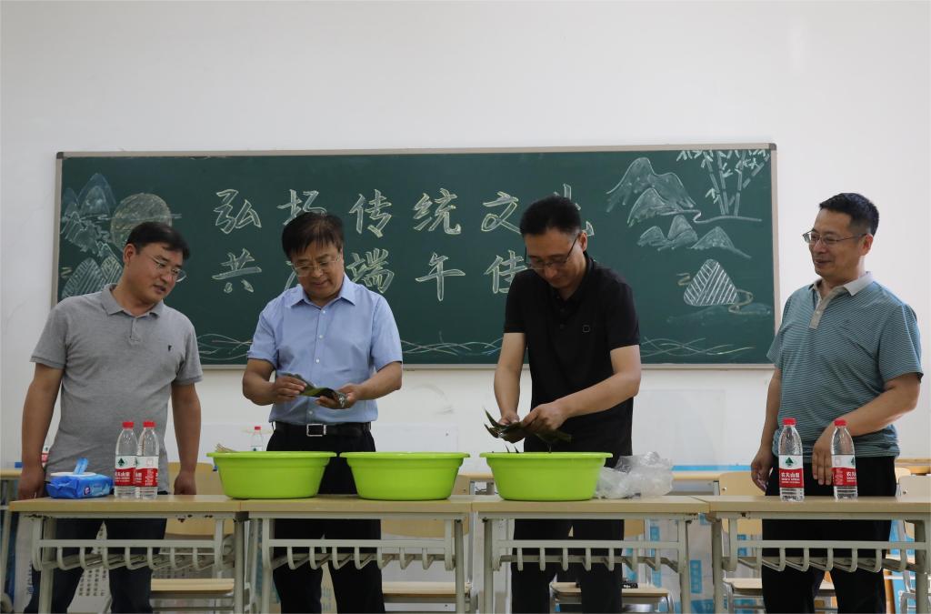 活動中,李榮軍與師生們一起觀看端午節(jié)相關視頻,動手包粽子,為學生系上五彩繩,現場氣氛活躍,節(jié)日氣息濃厚。