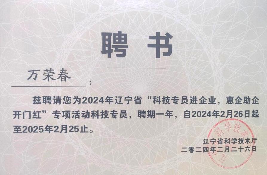 為更好發(fā)揮科教資源優(yōu)勢,引導(dǎo)高校科研人員服務(wù)企業(yè),促進(jìn)科技成果向企業(yè)轉(zhuǎn)化,遼寧省科技廳開展了“科技專員進(jìn)企業(yè),惠企助企開門紅”活動(dòng),并啟動(dòng)首批300名科技專員培訓(xùn)會(huì)。我院副院長萬榮春教授入選。